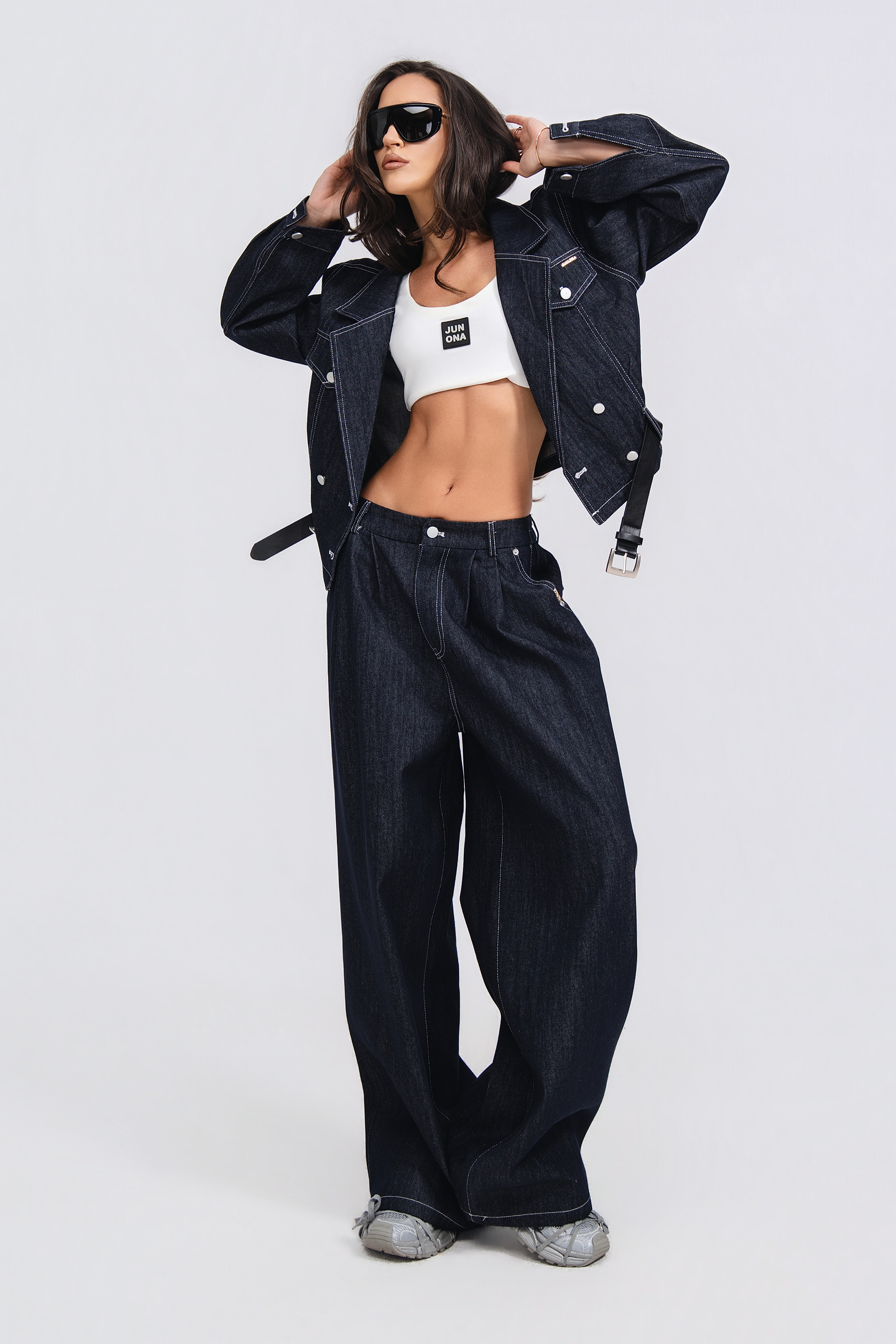 Описание: Свободно яке с ревер с назъбена яка и дълъг ръкав. Предни външни джобове с капак.. Колан с регулируем катарама. Закопчаване отпред с копчета.